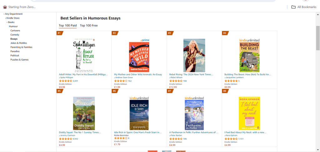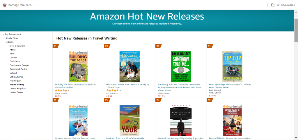 I am thrilled to say that last time I looked, it was #1 in Amazon’s Hot New Releases in Travel Writing and was ahead of Jeremy Clarkson but behind Spike Milligan in Humorous Essays.